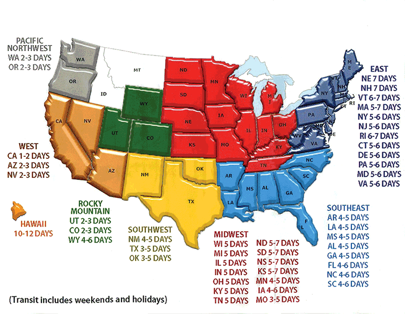 If you need to get your product across town or across the country, we can get you there and get you there fast! (See Transit Times and Route Map)